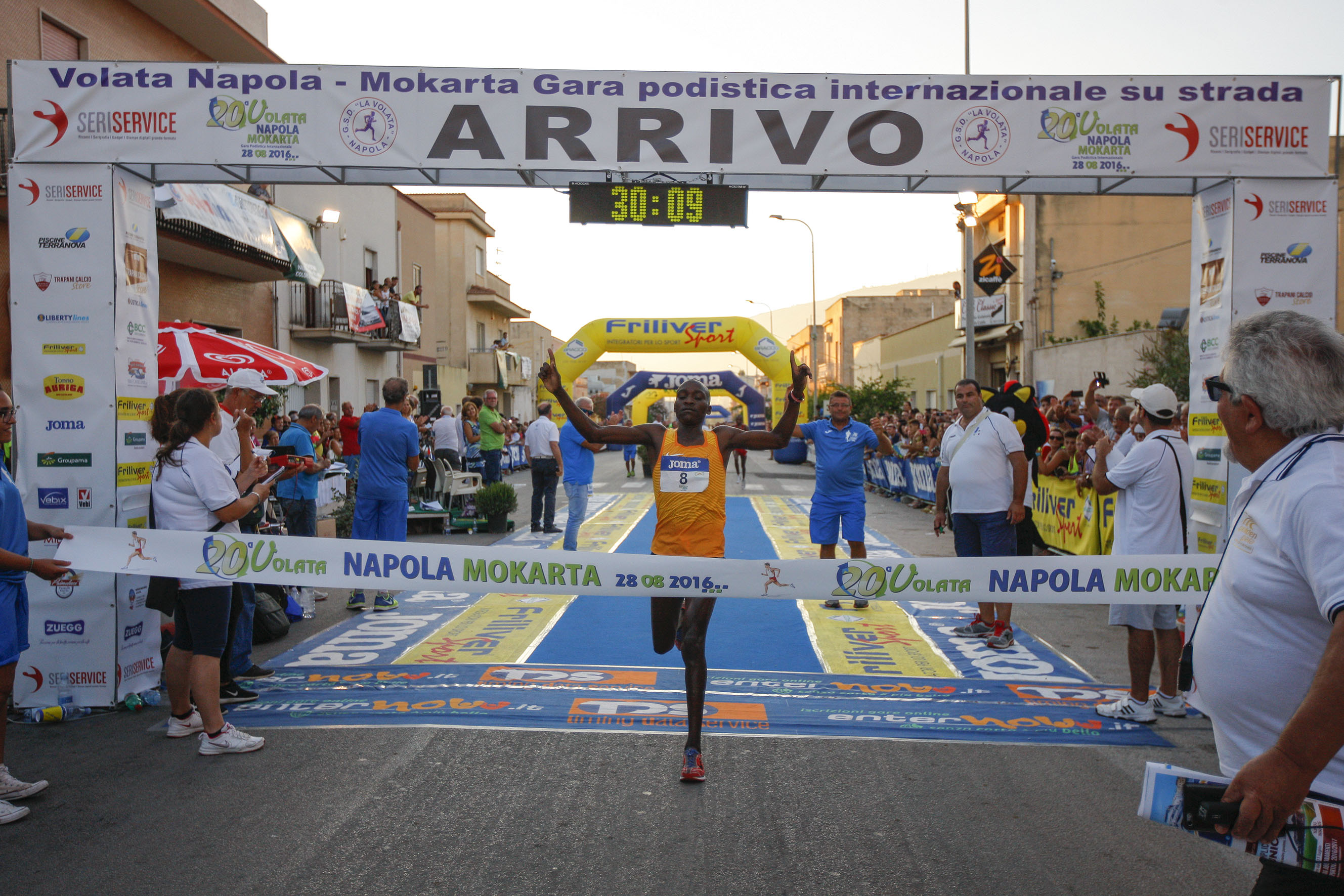 Vittoria a sorpresa nella 20^ edizione della “Volata Napola-Mokarta”. Stavolta a salire sul gradino più alto del podio di un delle più importanti gare podistiche su strada del centro-sud è stato l’ugandese Victor Kiplangat, il più giovane del lotto di 25 top runners che si sono sfidati sulla distanza dei 10.000 metri dell’impegnativo percorso ondulato che si snoda tra le frazioni di Napola (Erice) e Mokarta (Trapani). Kiplangat ha infatti appena 16 anni e nessuno, alla vigilia, avrebbe scommesso su di lui visto che ai nastri di partenza c’erano i campioni italiani in carica dei 5.000 metri e dei 10.000 metri, gli italo-marocchini Yassine Rachik e Ahmed El Mazoury, il portacolori delle Fiamme Gialle Yuri Floriani e il ruandese Felicien Muhitira, vincitore del 91° Giro podistico internazionale di Castelbuono. Giunto in Italia all’inizio del 2016 e tesserato per l’Atletica Capanne di Corciano (Perugia) il ragazzo ugandese si sta rivelando un autentico talento e sicuramente farà parlare si se in futuro. La gara ha avuto un avvio controllato animandosi solo negli ultimi tre giri quando si è formato in testa un gruppetto di quattro atleti capeggiato da Yassine Rachik. Al penultimo giro è venuto fuori Kiplangat affiancato da Muhitira e Rachik, un terzetto che ha poi tagliato nello stesso ordine il traguardo. Il tempo del vincitore è stato di 30’09, lontano dal record della gara stabilito nel 2011 dal keniano Micah Kipkemboi (29’16”). A seguire quindi Felicien Muhitira (30’14”) e Yassine Rachik (30’23), vincitore della scorsa edizione della “Volata”. Alle loro spalle il keniano Daniel Hgeno (30’47”) e Ahmed El Mazoury (30’54). “Non ho battuto il record della gara ma sono ugualmente contento della vittoria – le prime parole di Kiplangat – E’ però la quarta gara che corro in Italia. Spero di fare meglio il prossimo anno”. Deluso ma non tanto l’italiano Yassine Rachick: “Ci tenevo a vincere nuovamente a Napola. Il pubblico lungo il percorso mi ha incoraggiato ed ho cercato di dare il massimo ma sono reduce da un infortunio ad una caviglia. Adesso mi concentrerò per i campionati italiani in programma fra due settimane. Questo ragazzo che ha vinto, comunque, è veramente bravo”.