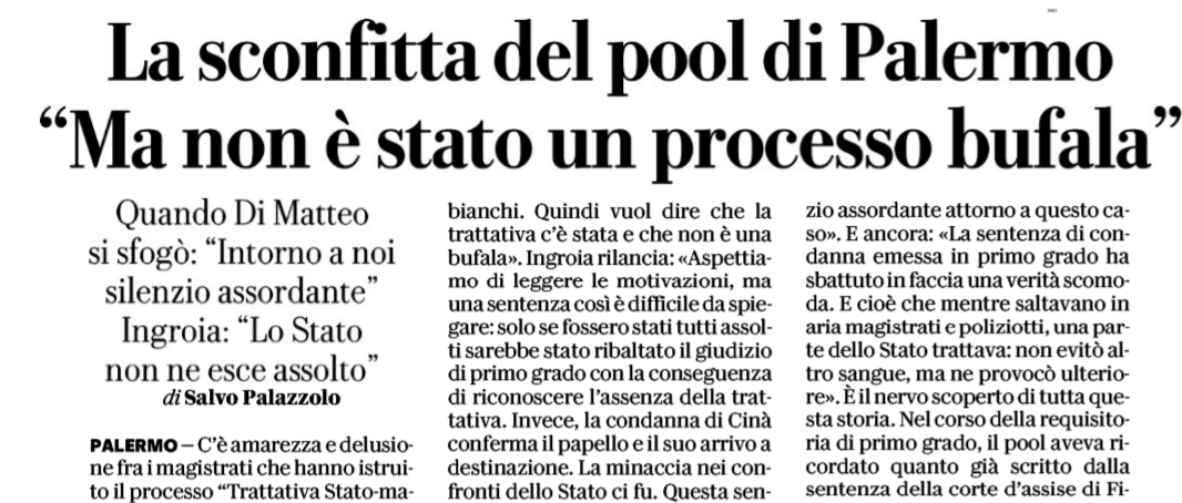 È questa la spiegazione proposta dall’ex magistrato Antonio Ingroia sulla sentenza del processo per la trattativa Stato-mafia che è stata letta ieri in Corte d’Assise d’appello nell’aula bunker del carcere Pagliarelli di Palermo. Secondo Ingroia, i giudici avrebbero quindi confermato “l’esistenza di un papello con le richieste dei boss“.
