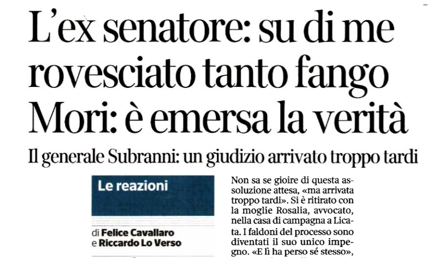 Nel pomeriggio di ieri la Corte d’Appello di Palermo ha assolto l’ex senatore Marcello Dell’Utri e gli ex carabinieri Mario Mori, Antonio Subranni e Giuseppe De Donno nell’ambito del secondo processo sulla cosiddetta e presunta “trattativa Stato-mafia”, cioè la teoria secondo cui alcuni organi dello Stato avrebbero trattato con la criminalità organizzata siciliana con l’obiettivo di costringere i governi in carica ad adottare un atteggiamento più morbido nei confronti della mafia stessa.