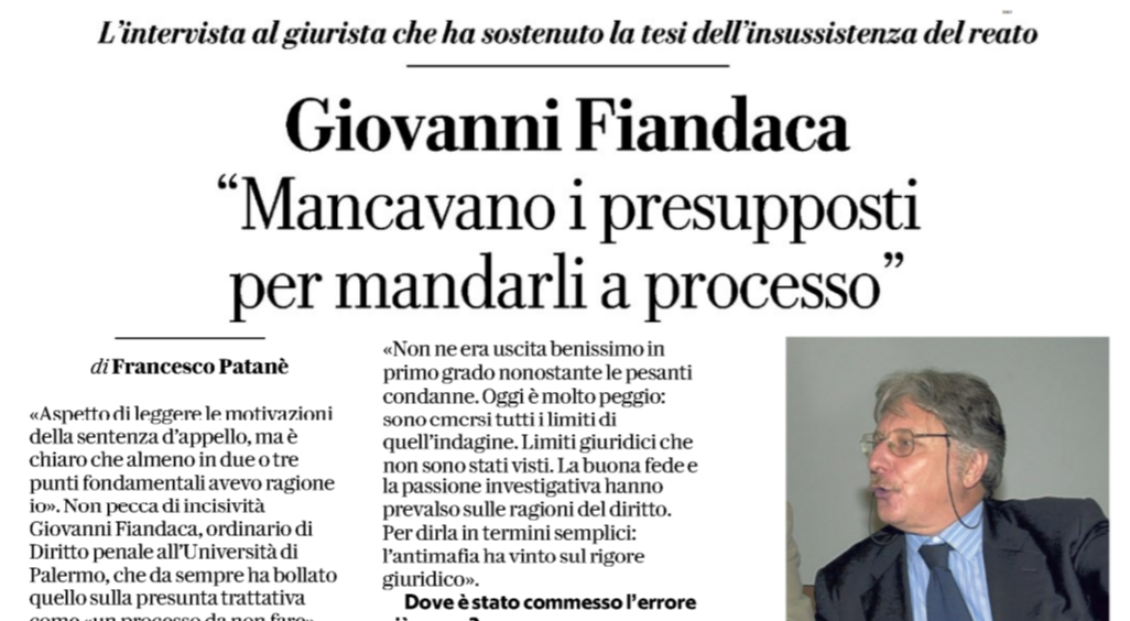 “Il dispositivo – aggiunge – mi induce a pensare pure che, secondo la Corte, il papello sarebbe arrivato al potere politico, cioè al Governo. E così si spiega la condanna di Antonino Cinà, il medico di Riina accusato di avere portato ai suoi interlocutori l’elenco delle richieste“.