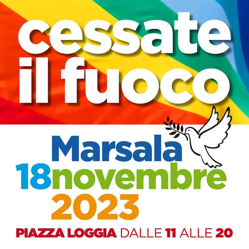 MARSALA - Sabato 18 novembre, a partire dalle ore 11.00 in piazza Loggia, si terrà la manifestazione “Cessate il fuoco” per chiedere lo stop alle armi e alle guerre che si stanno consumando dall’Ucraina al Medio Oriente.