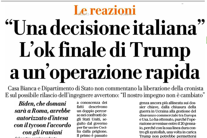 Il dubbio adesso, per Mohamed Abedini-Najafabadi, è solo quando. Ma l’ingegnere iraniano, detenuto su richiesta degli Usa per sostegno ai Pasdaran, va verso la liberazione e la non estradizione negli Stati Uniti. Sicuramente, in base agli accordi tra la presidente del Consiglio Giorgia Meloni e Donald Trump, la sua posizione cambierà prima del 20 gennaio, giorno dell’insediamento del tycoon alla Casa Bianca. La diplomazia italiana e l’intelligence hanno incassato la fiducia di Teheran ed ottenuto la liberazione per Cecilia Sala con l’assicurazione che sarebbe arrivata anche quella di Abedini. Per l’ingegnere iraniano detenuto a Milano dal 16 dicembre su richiesta degli Usa, il ministro della Giustizia Carlo Nordio potrebbe disporre la liberazione anche prima dell’udienza di mercoledì, quando i giudici della Corte d’Appello di Milano saranno chiamati a pronunciarsi sulla concessione dei domiciliari, in un appartamento messo a disposizione dal consolato iraniano a Milano e senza braccialetto elettronico.