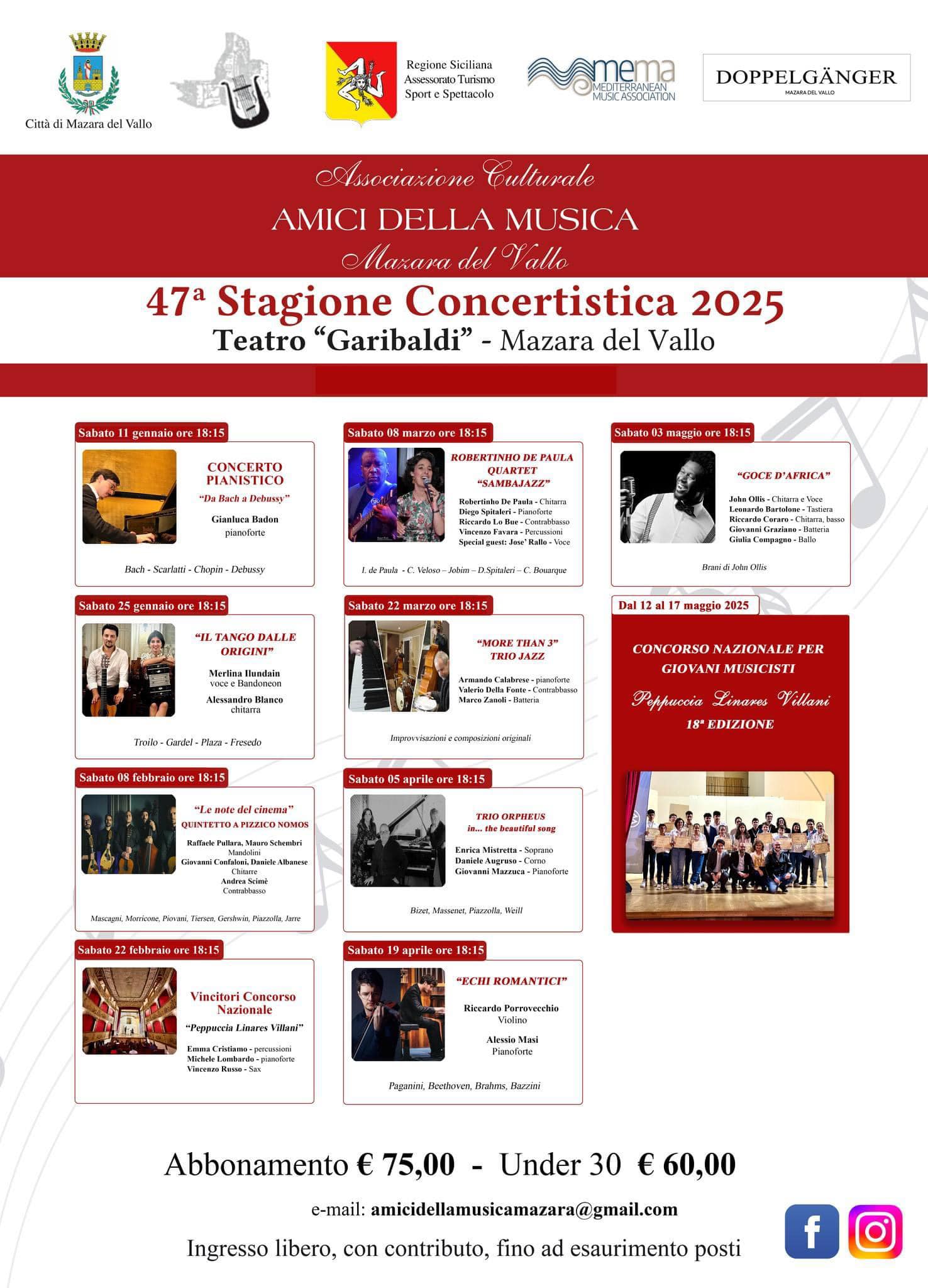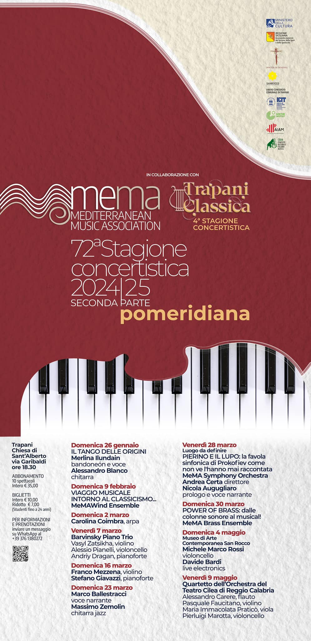 TRAPANI - Domenica 26 gennaio, alle ore 18:30, presso la Chiesa di Sant’Alberto a Trapani (via Garibaldi), si terrà il concerto “Il Tango delle Origini” con Merlina Ilundain (bandoneón e voce) e Alessandro Blanco (chitarra), nell'ambito della 72ª Stagione Concertistica.