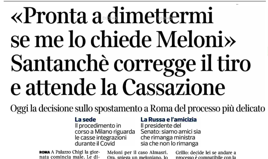 Santanchè in bilico: La ministra del Turismo Daniela Santanchè è sempre più nervosa. Oggi la Cassazione si esprimerà sulle accuse di truffa ai danni dell’Inps che la vedono coinvolta. Ha dichiarato: «Farò quello che vuole Giorgia Meloni», lasciando intendere di essere pronta a dimettersi se necessario.