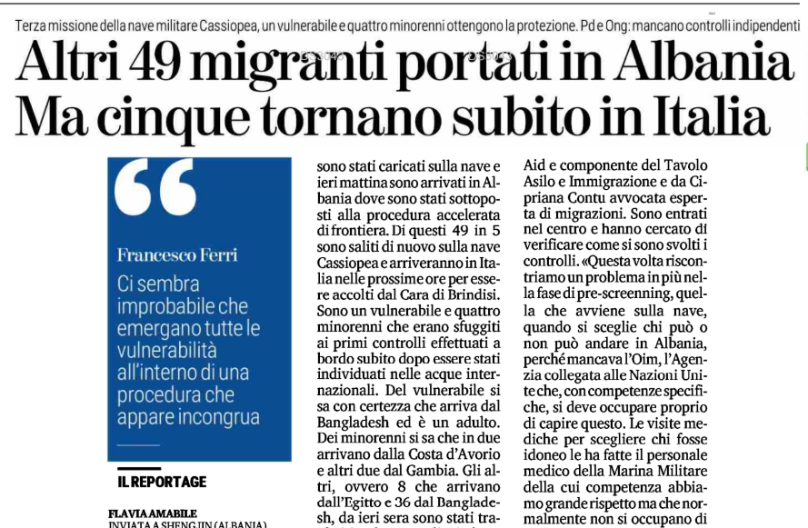 Migranti, sbarco in Albania: La nave Cassiopea ha trasportato e sbarcato 49 migranti in Albania. Tra loro, cinque sono stati giudicati vulnerabili e verranno portati in Italia. Intanto, il giudice per le indagini preliminari di Crotone ha fissato l'udienza per i sei indagati della strage di Cutro.