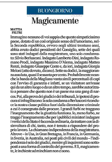 - Il Fatto Quotidiano: Meloni spaccia un atto / dovuto per un complotto