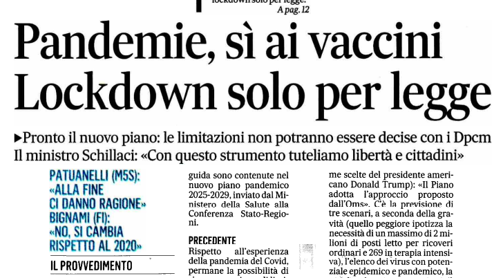 Il nuovo Piano Pandemico prevede non solo i vaccini come unico strumento di contrasto ai patogeni; sì alle restrizioni alla libertà personale solo nel caso di una "pandemia di carattere eccezionale", ma senza il ricorso ai Dpcm; no a forme di discriminazioni e stigma sociale. E’ questa l’impalcatura del nuovo piano pandemico nazionale 2025-2029.
