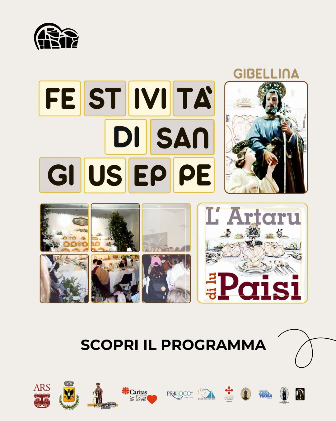 GIBELLINA - Domenica 16 marzo a Gibellina si aprono le celebrazioni per la Festa di San Giuseppe. Alle 17:00 si terrà il Triduo di San Giuseppe con Celebrazione Eucaristica nella Chiesa di San Giuseppe. Alle 21:00 seguirà il Rosario di San Giuseppe presso L’Artaru di lu Paisi nell’Aula Consiliare.