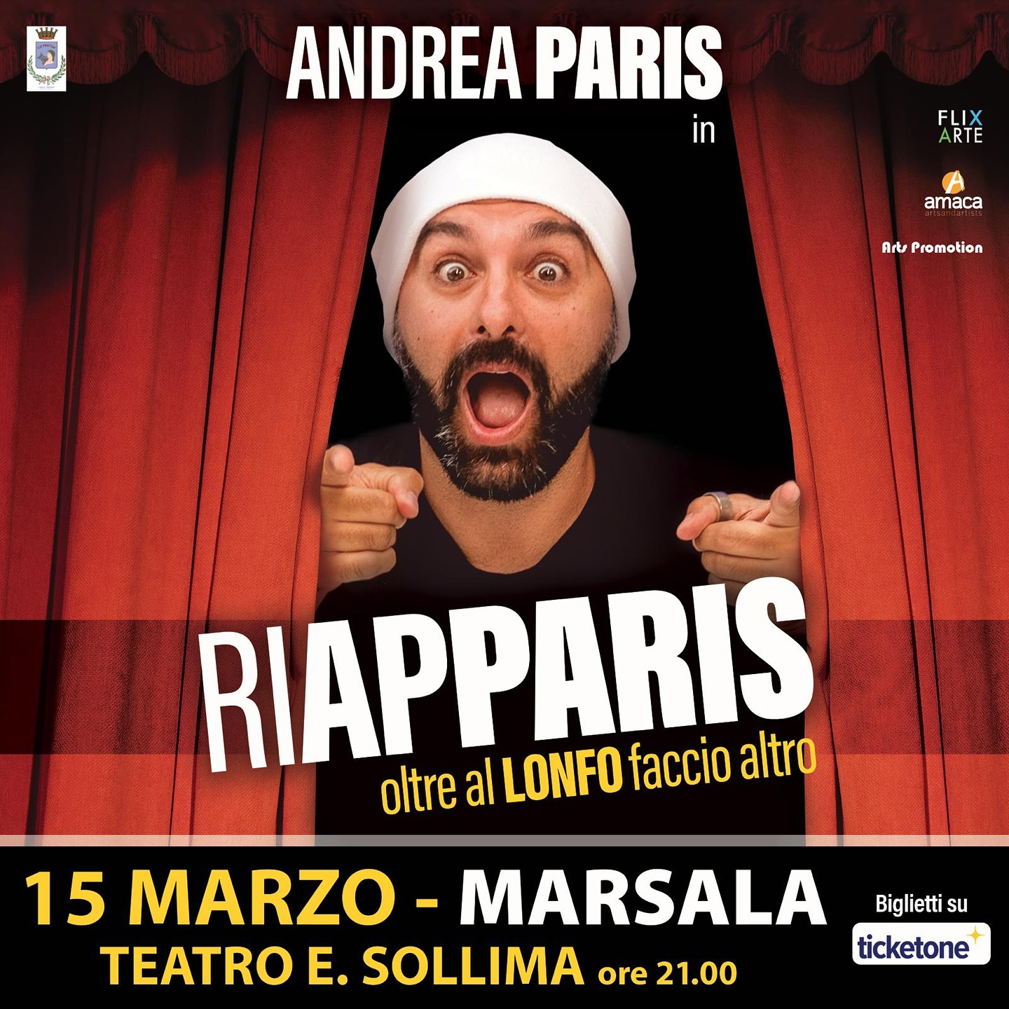 MARSALA - Andrea Paris torna a Marsala il 15 marzo, alle ore 21.00, con ‘Riapparis’, il suo spettacolo di magia e comicità. Uno spettacolo imprevedibile e adatto a tutta la famiglia.