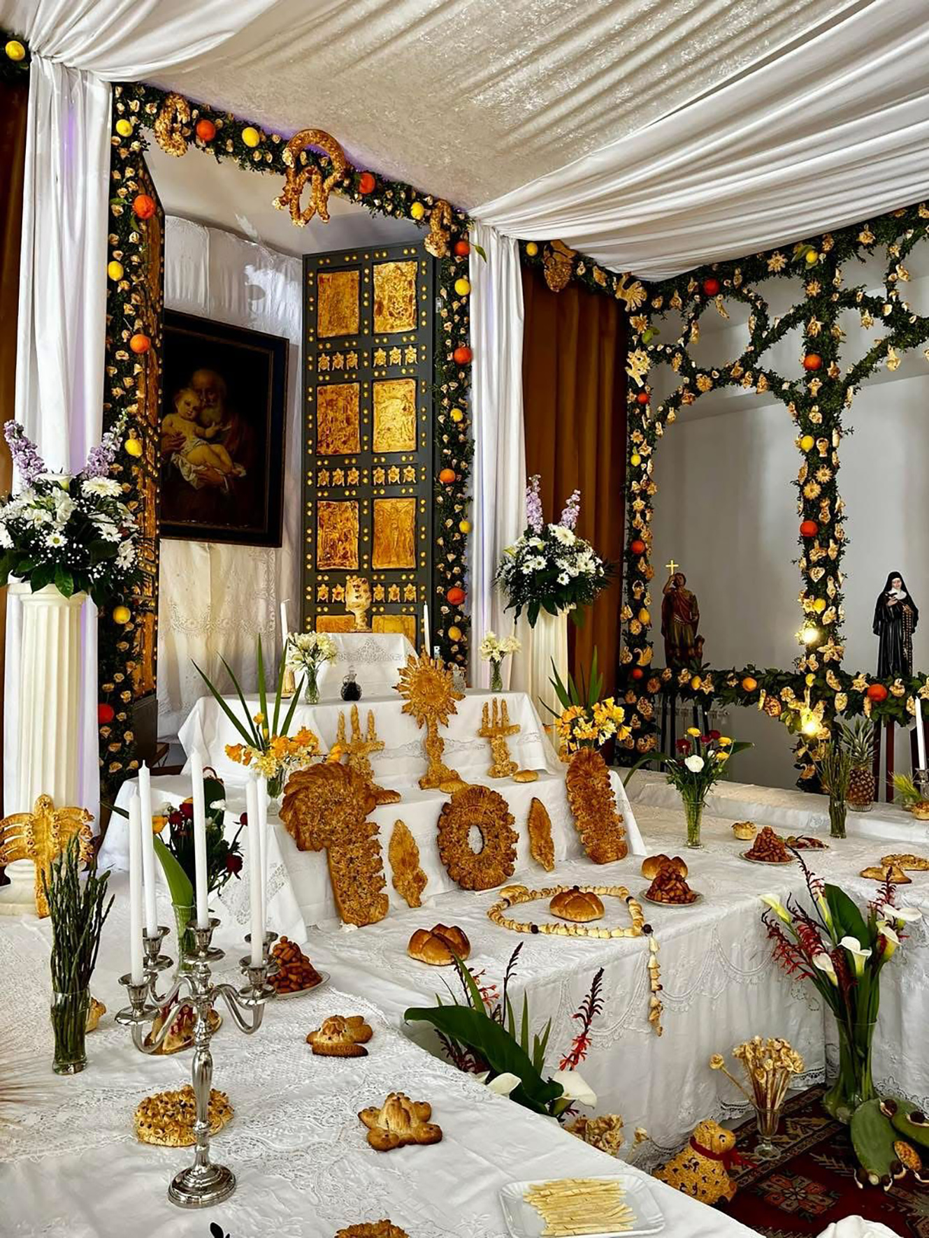 alla domenica, dalle ore 7 alle ore 19. Mercoledì 19 marzo, solennità di San Giuseppe, saranno celebrate due messe, alle ore 9,15 e alle ore 17,30. Dopo la celebrazione eucaristica i volontari della cappella doneranno a tutti i pazienti e al personale dell’ospedale un pane lavorato di San Giuseppe. Alla preparazione dei pani ha contribuito il panificio di Nicola Bono. A Campobello di Mazara, nel salone della parrocchia San Giovanni Battista, altare allestito dall’Azione Cattolica. Lunedì 17 marzo, ore 18, don Pietro Pisciotta offrirà una riflessione ispirata sul tema degli altari. Martedì 18, visite all’altare dalle ore 9 alle 13 e dalle 15 alle 20; ore 19, benedizione dell’altare e, a seguire, santa messa presieduta dal Vescovo monsignor Angelo Giurdanella. Mercoledì 19, alle ore 11, nella chiesa madre sarà celebrata la santa messa; a seguire processione coi Santi verso l’altare dove inizierà il pranzo che durerà tutto il giorno. Oggi – domenica 16 marzo – dalle 16 alle 19, l’altare rimarrà aperto per le visite e sarà recitato il Santo Rosario.