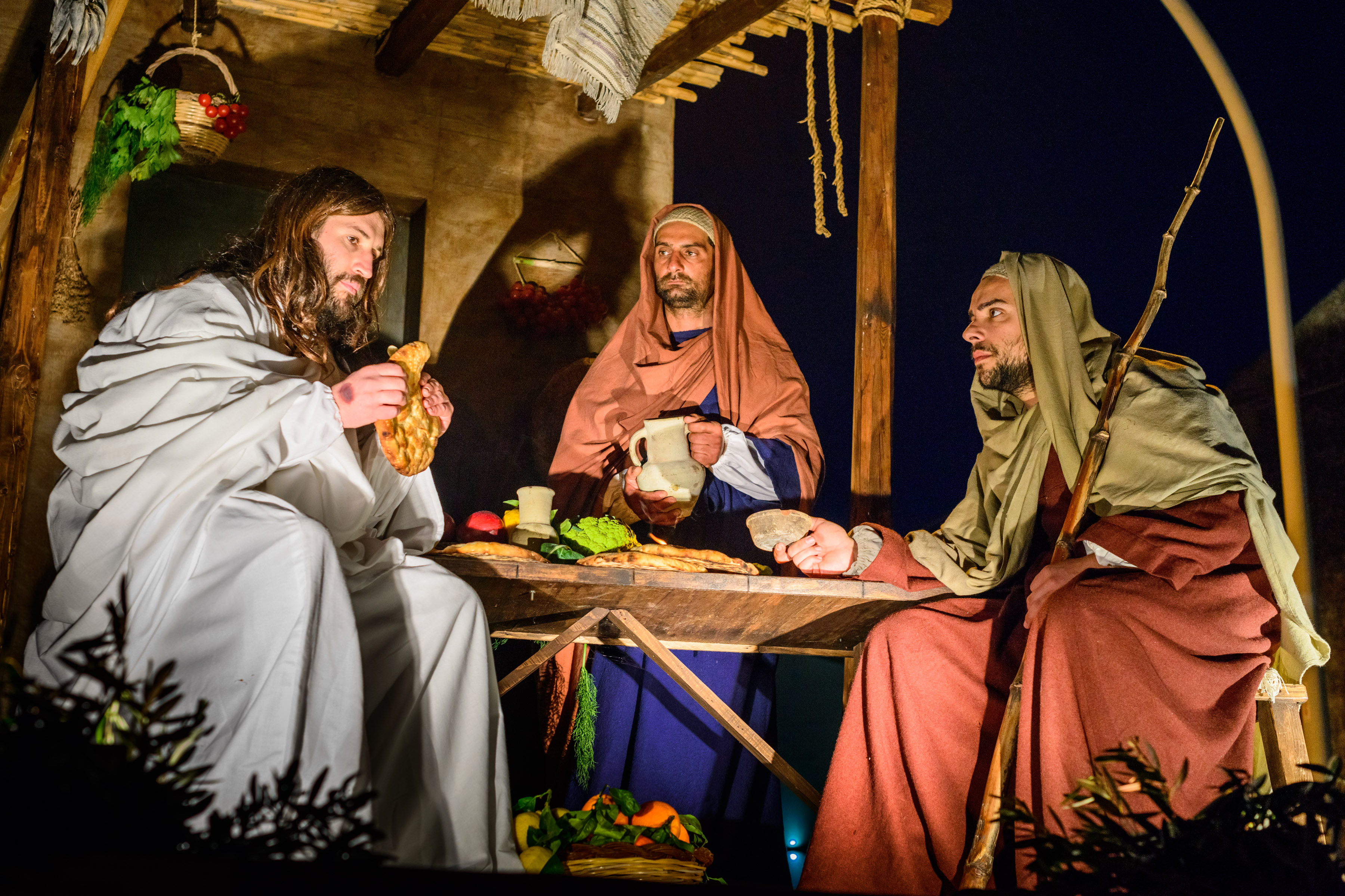 La processione dei Misteri sarà aperta dal prezioso Crocifisso ligneo risalente alla fine del ‘500, titolare dell’omonima Confraternita e da un pregevole dipinto sacro raffigurante la Vergine Addolorata. A rendere unica la sacra rappresentazione saranno ancora una volta i sedici carri con i personaggi viventi. Ad accompagnarli durante il corteo ci saranno quattro bande musicali del territorio. Al sopraggiungere della sera, un suggestivo gioco di luci e ombre accentua ancor più profondamente la dimensione sacra e religiosa della processione.