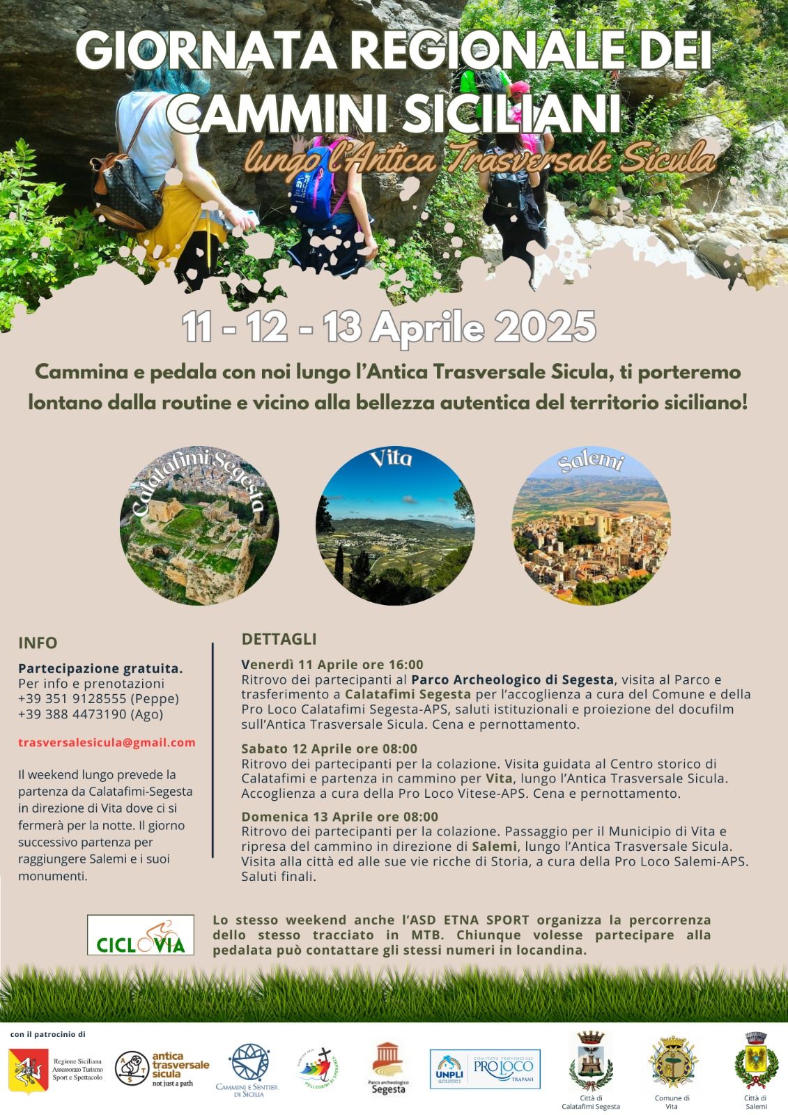 Un’occasione imperdibile per chi desidera staccare dalla routine e immergersi nel cuore dell’isola, in compagnia di altri viandanti e ciclisti, lungo un tratto dell’Antica Trasversale Sicula, tra le province di Calatafimi-Segesta, Vita e Salemi, nel trapanese.