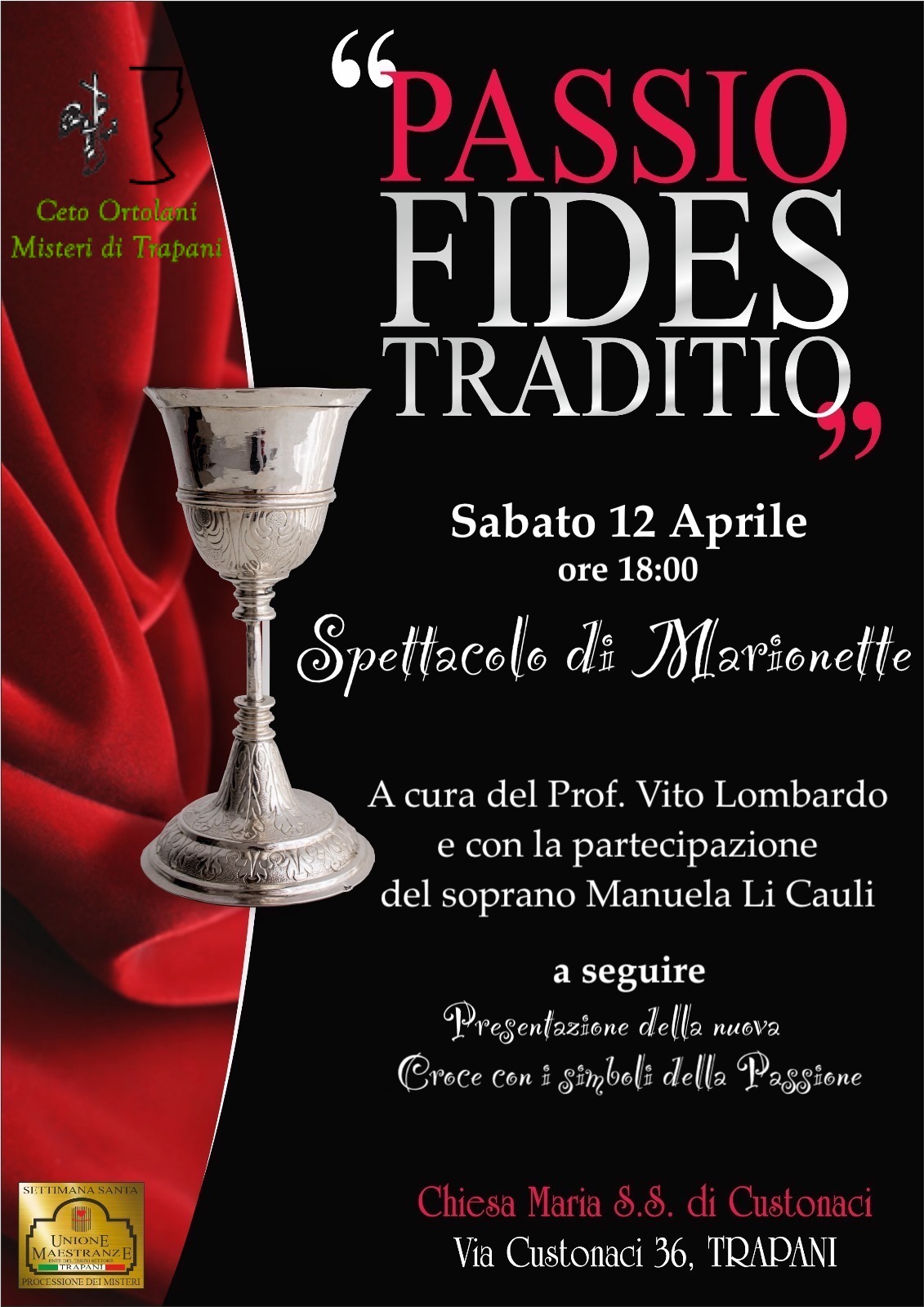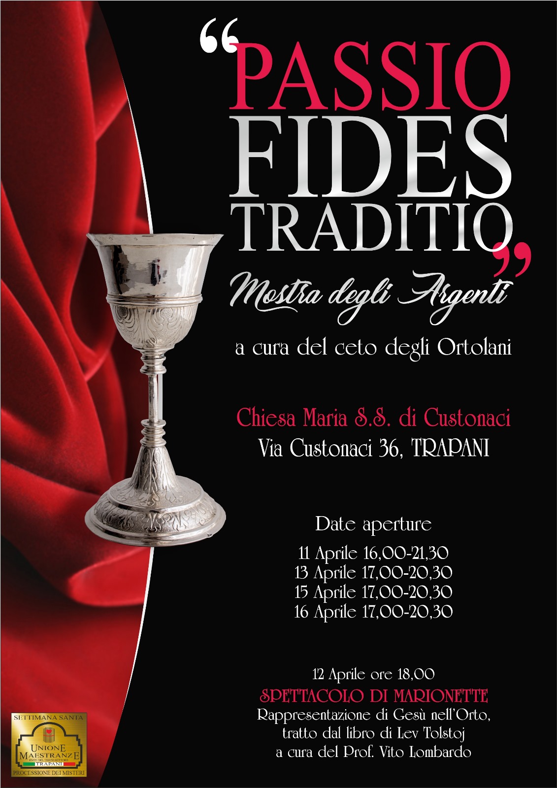 Dal 11 al 16 aprile, la Chiesa Maria SS. di Custonaci di Trapani ospiterà la mostra "Passio Fides Traditio", organizzata dal Ceto degli Ortolani.