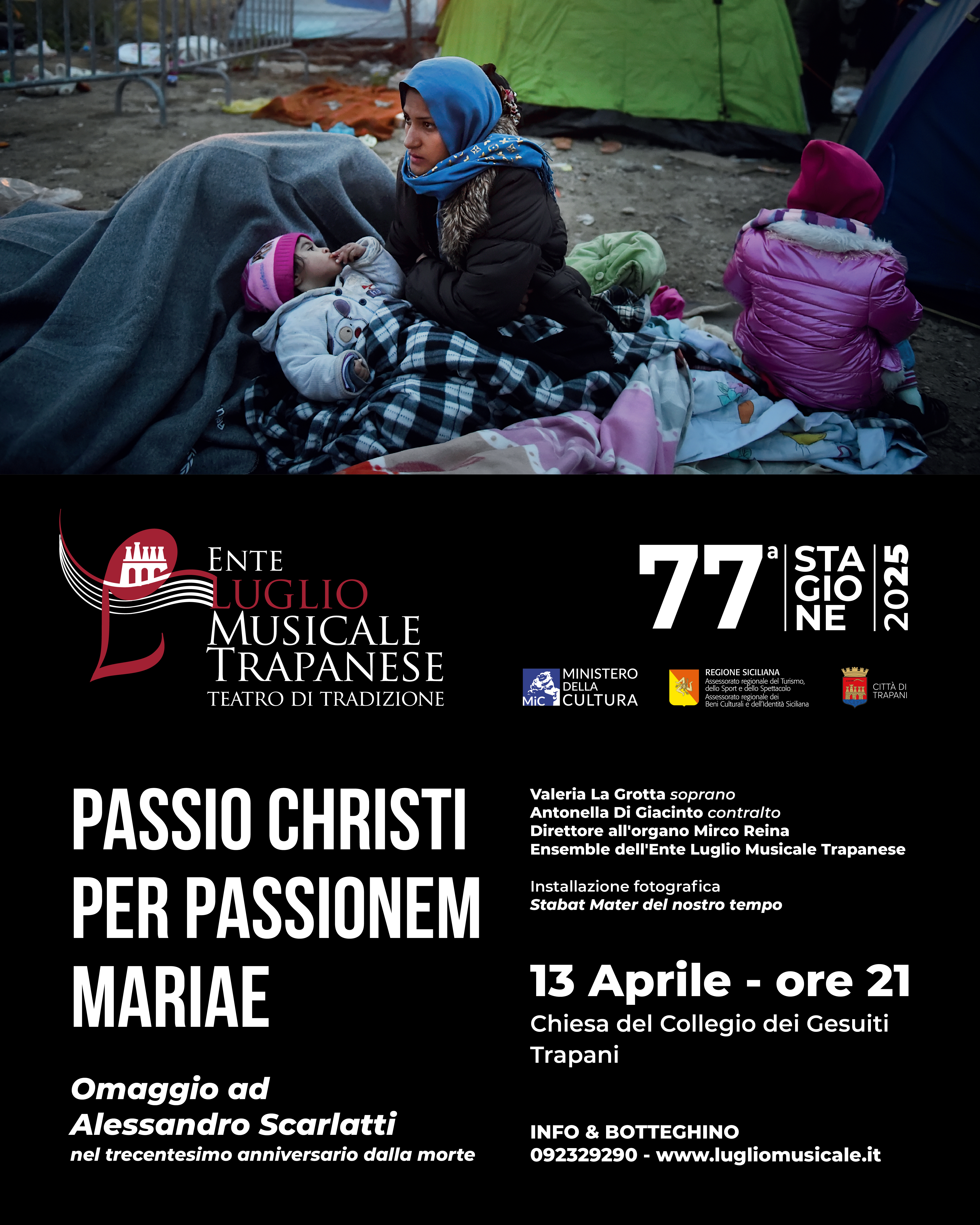 TRAPANI - Il 12 e 13 aprile 2025, Trapani si prepara a vivere la Settimana Santa con due eventi significativi. Sabato 12 aprile, la città ospiterà la mostra "Passio Christi per Passionem Mariae", che unisce la musica sacra di Alessandro Scarlatti con un'installazione fotografica, esplorando il dolore materno attraverso opere artistiche e marionette. Domenica 13 aprile, alle 18:00, si terrà il tradizionale Corteo delle Maestranze, un evento solenne che partirà da Piazza Purgatorio e attraverserà il centro storico, coinvolgendo la comunità con suoni e simboli, per culminare in una preghiera alla Chiesa delle Anime Sante del Purgatorio. Sempre il 13 aprile, alle 21:00, la Chiesa del Collegio dei Gesuiti ospiterà un evento che celebra il trecentesimo anniversario della morte di Alessandro Scarlatti. L’esecuzione di "Salve Regina" e "Stabat Mater" vedrà il soprano Valeria La Grotta, il contralto Antonella Di Giacinto e l'Ensemble dell'Ente Luglio Musicale Trapanese, diretti da Mirco Reina. I biglietti, al costo di €15, sono disponibili online o presso il botteghino in Viale Regina Margherita 1 a Trapani. Per info: +39 0923 29290.