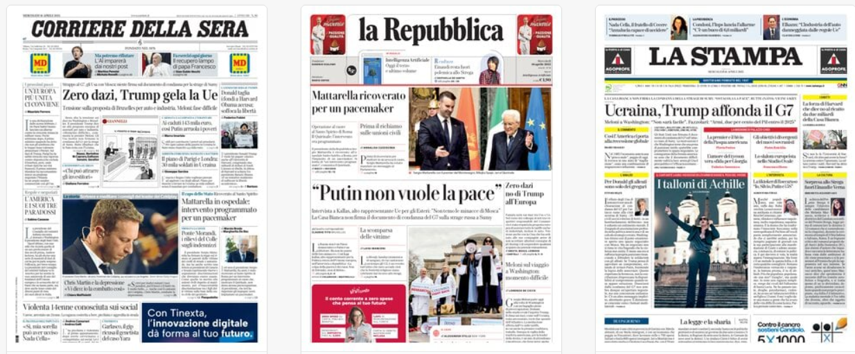 E' il 16 Aprile 2025. Ecco i principali fatti in Italia e nel mondo, ed i titoli dei principali quotidiani.