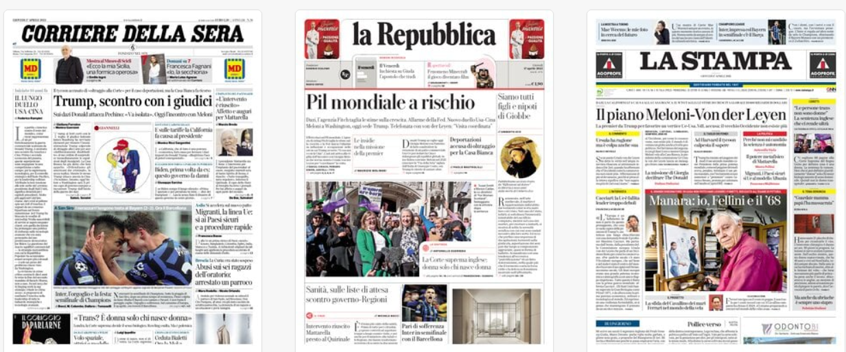 E' il 17 Aprile 2025. Ecco i principali fatti in Italia e nel mondo ed i titoli dei quotidiani.