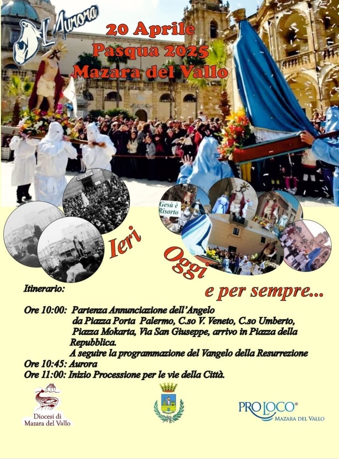 Mazara del Vallo si prepara a vivere, come ogni anno, uno dei momenti più intensi e simbolici della sua Settimana Santa: il Rito dell’Aurora, che si svolgerà domenica 20 aprile, giorno di Pasqua, alle ore 10:45 nella suggestiva cornice di piazza della Repubblica.