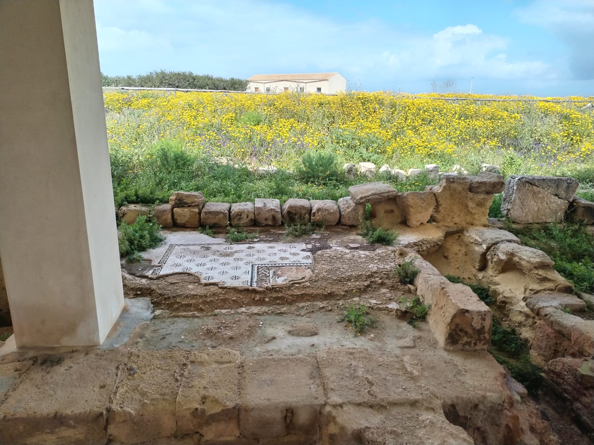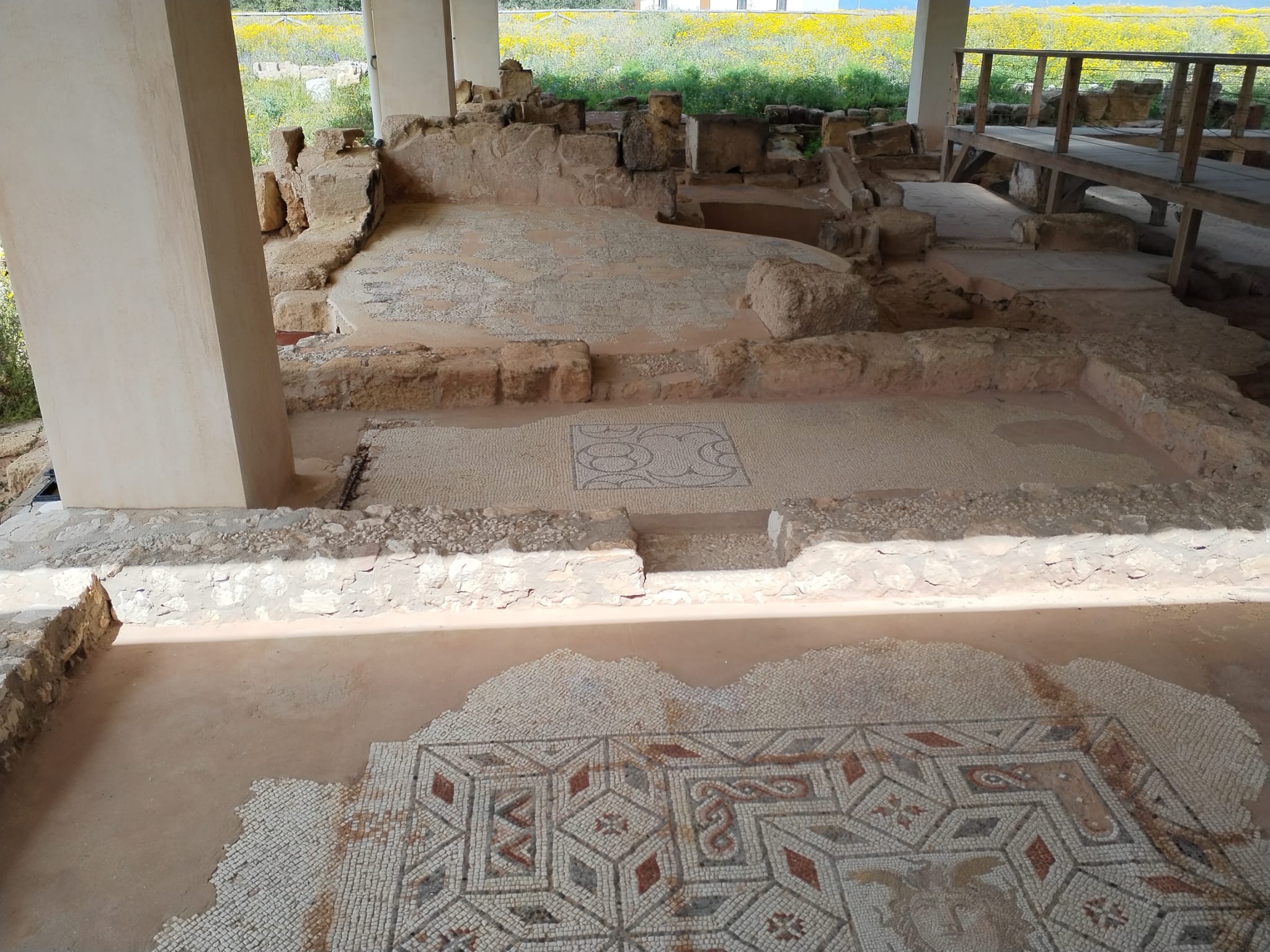 Ad esempio, la grande copertura in cemento armato (come è stato possibile solo pensarla) realizzata decenni fa sopra la villa romana – con travi e pilastri – oggi mostra segni di cedimento: in diversi punti si notano sfaldamenti, ferro a vista, e calcinacci in bilico sopra i mosaici. Una struttura che doveva preservare rischia ora di danneggiare.