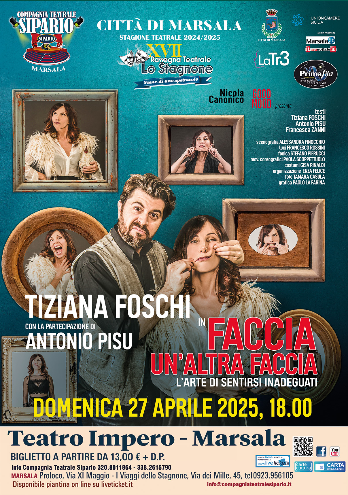 Si intitola “Faccia un'altra faccia - L'arte di sentirsi inadeguati” lo spettacolo che andrà in scena domenica 27 aprile alle ore 18 nel teatro Impero di Marsala.