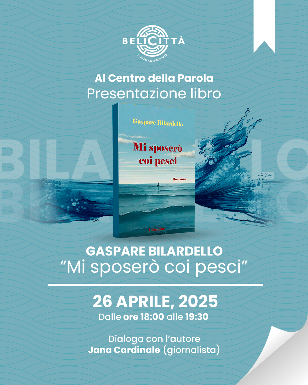 CASTELVETRANO - Il 26 aprile, alle 18:00, presso il Centro Commerciale Belicittà, si terrà la presentazione del libro "Mi sposerò coi pesci" di Gaspare Bilardello (ed. Libridine). L'autore converserà con Jana Cardinale nell'ambito della rassegna "Al Centro della Parola". L'ingresso è libero.