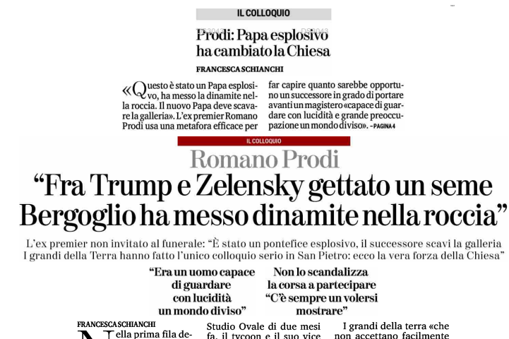 • Sabato mattina prima dei funerali di papa Francesco, Trump e Zelens’kyj hanno avuto un colloquio. Il presidente americano s’è detto però deluso dalla Russia che, mentre parla di pace, continua a bombardare: «Putin mi sta prendendo in giro?»