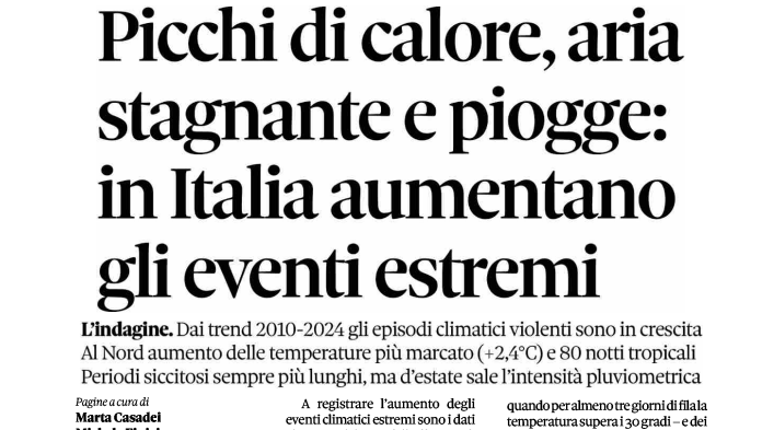 Il Sole 24 Ore: Indice del clima / Piogge, caldo e aria / stagnante: eventi / estremi in crescita