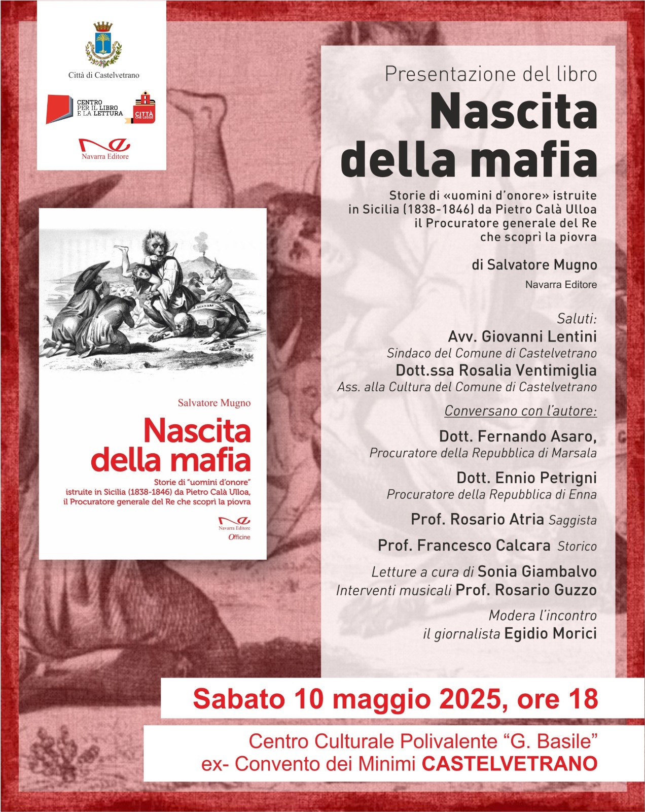 A Castelvetrano si presenta il libro “Nascita della mafia” di Salvatore Mugno, pubblicato da Navarra Editore. L’appuntamento è per sabato 10 maggio 2025, alle ore 18.00, presso il Centro culturale polivalente “G. Basile” di Castelvetrano.