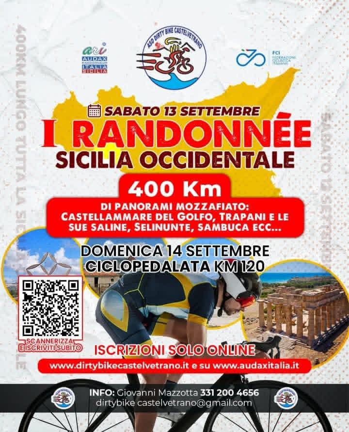 Si svolgerà a Castelvetrano il prossimo fine settimana, dal 13 al 14 settembre, la "I RANDONNÈE SICILIA OCCIDENTALE" da 400 km.