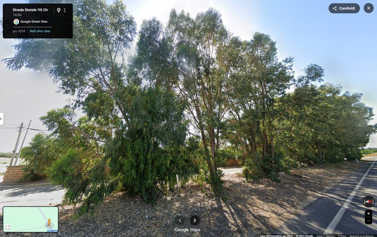 Sono stati capitozzati gli eucalipti in contrada Santa Teresa, lungo il ciglio della strada statale che collega Castelvetrano con Marinella di Selinunte. Ce lo segnala Giovanni, un automobilista che da anni percorre quasi giornalmente quel tratto (gestito dall’Anas), inviandoci la foto di Google maps