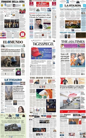 La comunanza di visione tra Russia e USA, a spese dell'UE, e la prima alla Scala le notizie principali dei giornali italiani di oggi. La crisi politica legata ai molti casi di corruzione avvicinano sempre più le elezioni anticipate in Spagna. La nuova strategia degli USA per l'Europa, e i colloqui tra Merz e Netanjahu sui giornali tedeschi. La vittoria del mondiale di F1 del britannico Norris, e lo Stato che incoraggia ad iscriversi ai sindacati, dopo le liti tra laboristi e sindacato, al centro della pagine dei quotidiani inglesi. L'ex jihadista Ahmed al-Charaa ha imposto il suo potere autocratico sulla Siria, e la rinascita di Notre-Dame su Le Figaro. In Irlanda, che ospita la sede in Europa di molte big tech, si aspettano che queste resistano alle crescenti restrizioni normative. Meno richieste di adozione, e la triste vita in Algarve sul portoghese Publico. Ancora palestinesi ammazzati, riporta Arab News. L'incendio e i morti a Goha sui giornali indiani. Sempre tensione tra Cina e Giappone.