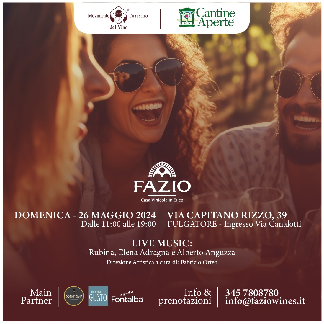 CANTINE FINA - Dalle ore 12:00 fino al tramonto, la cantina marsalese della famiglia Fina aprirà le sue porte al pubblico per un'immersione totale nel mondo del vino e dei sapori Made in Sicily. La giornata sarà una grande festa, ricca di esperienze sensoriali all'insegna del gusto e del divertimento. L’evento si aprirà con l'accoglienza dei visitatori e avrà inizio un vortice di esperienze sensoriali. Le note di musica dal vivo allieteranno l'atmosfera mentre i più piccoli potranno scatenarsi con animazioni dedicate e gli adulti dedicarsi ai giochi vintage come l’attesissimo toro meccanico - ormai di attrazione irrinunciabile - e il biliardino. Immancabili le degustazioni guidate, che permetteranno di assaporare due calici a scelta tra le pregiate etichette di Cantine Fina.