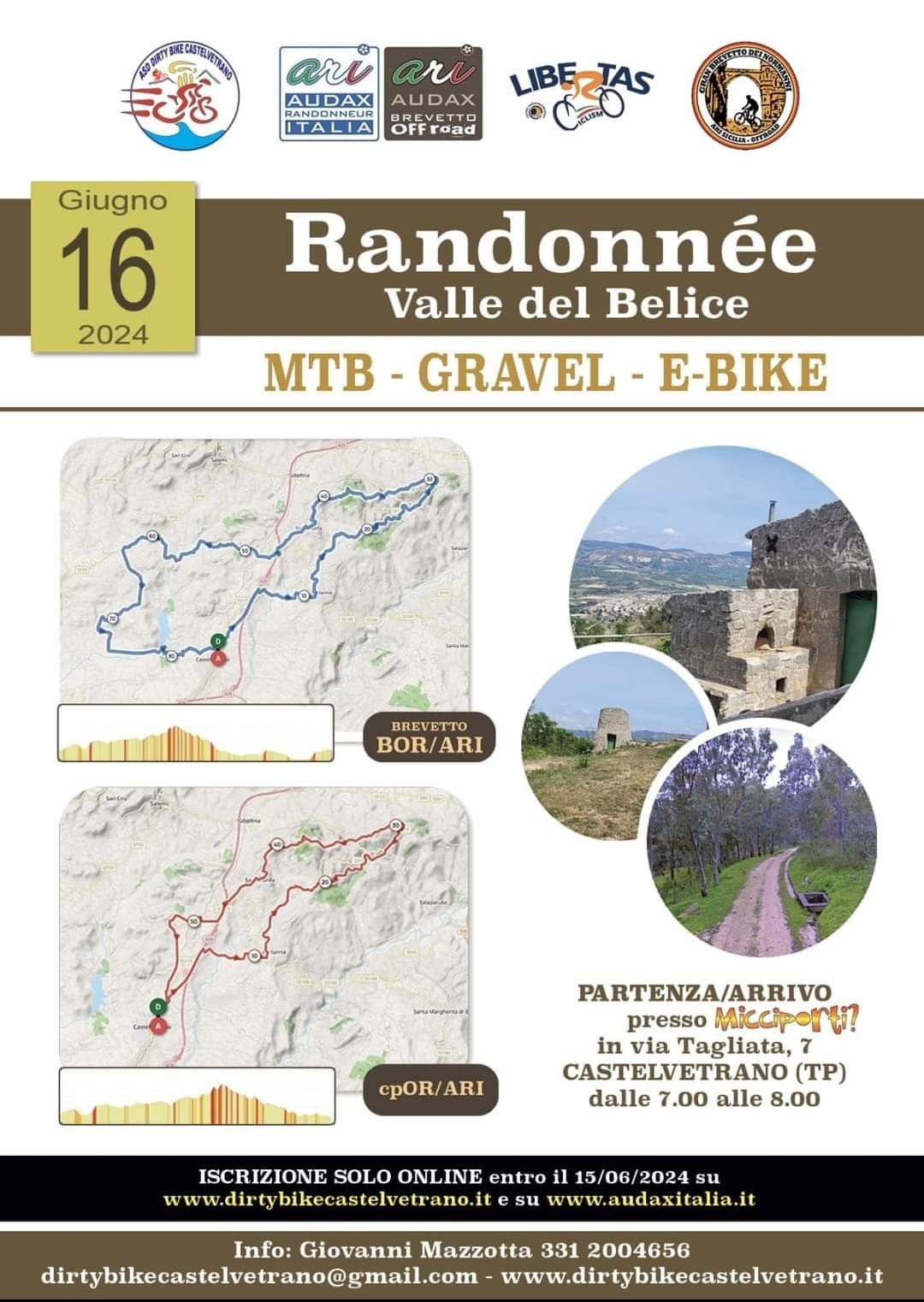 Iscrizioni entro il 15 giugno 2024 su www.dirtybikecastelvetrano.it e su www.audaxitalia.it