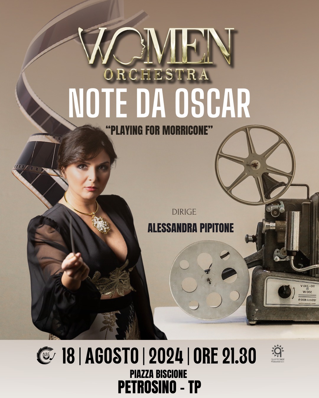 Il 18 agosto alle 21.30, presso suggestiva cornice di Piazza Biscione, a Petrosino si terrà il concerto della Woman Orchestra intitolato “Note da Oscar”.