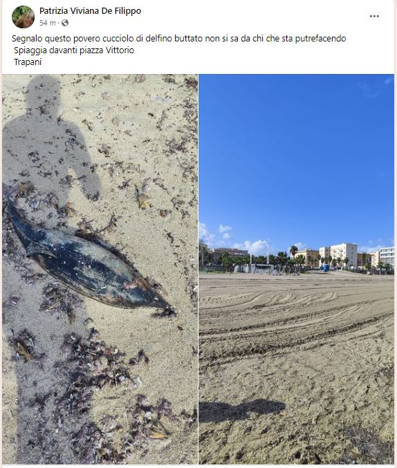 A denunciare l'accaduto, la signora Patrizia. "Segnalo questo povero cucciolo di delfino buttato non si sa chi che sta putrefacendo. Spiaggia davanti piazza Vittorio, Trapani". A cui fanno eco in molti. C'è chi le consiglia di chiamare subito la Capitaneria di Porto, e chi le ricorda che i delfini possono sopravvivere anche fino a 3 ore fuori dall'acqua, quindi di non perdere tempo.