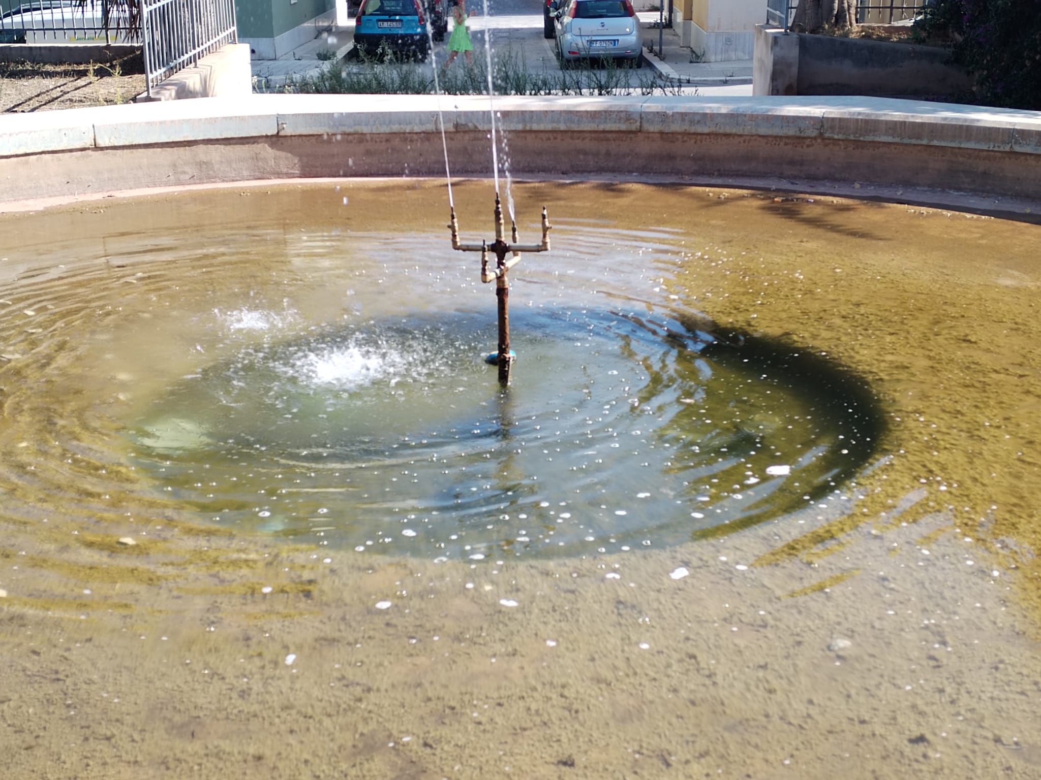 La fontana di Piazza Marconi – La fontana è una delle tre con l’impianto funzionante, anche se con un gettito d’acqua ridotto rispetto al passato. C’è poca acqua all’interno della vasca e come si può vedere, anche dal colore, non è proprio pulita, tra l’altro nel momento in cui abbiamo scattato le foto c’era un operatore addetto alla pulizia che toglieva qualche cartaccia o quant’altro era finito dentro. Altra cosa che ci ha colpito è l’incuria intorno alla fontana, con le erbacce cresciute sui gradini della piccola scalinata che porta proprio ai “Giardini Paolo Angileri” di piazza Porticella. Qui sotto il video.