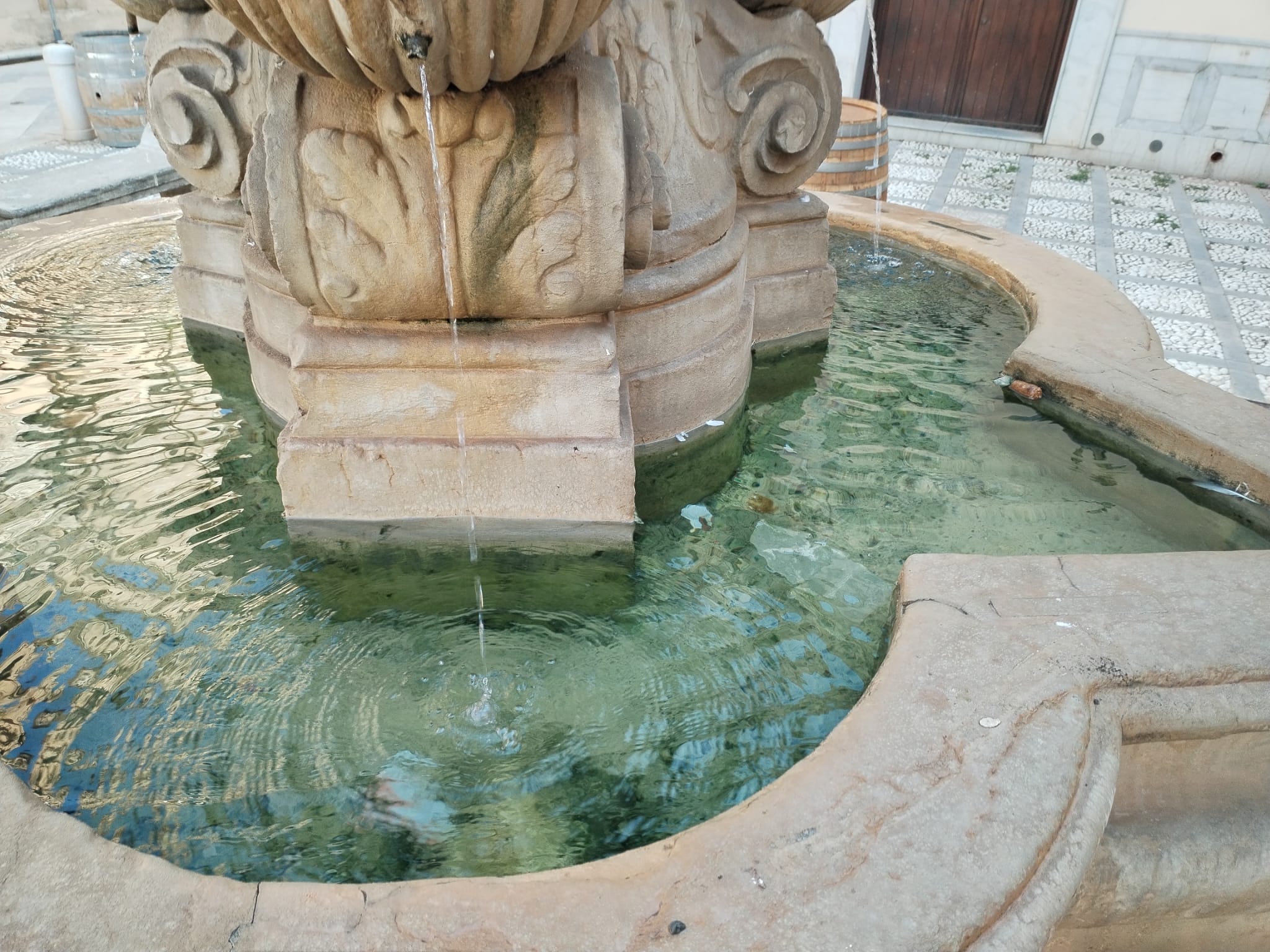 La fontana di Pazzetta Purgatorio – Il gioiello settecentesco del centro storico funziona. L’acqua scorre regolarmente, anche qui non mancano le cose che non vanno, tra un tappo di una bottiglia di spumante e residui di bicchieri di plastica, la fontana si trova nel cuore della movida notturna e spesso viene usata, infatti, dai ragazzi, come luogo dove lasciare appunto bottiglie e bicchieri. Il fondo della fontana è comunque abbastanza pulito. Ciò che si dovrebbe verificare è, invece, la fuoriuscita d’acqua che bagna l’intera costruzione, i rilievi della fontana e il pavimento circostante, come vedete totalmente bagnato.