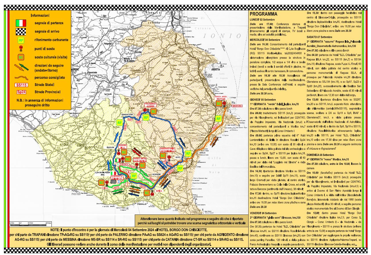 Al via il sesto Raid Lambrettistico di Sicilia del 2024, con la presenza di 47 partecipanti, tra cui 30 equipaggi, con una significativa presenza internazionale proveniente da Malta e dal Belgio. La manifestazione ha preso il via il 2 settembre a Trapani, dove ad accogliere i tanti affezionati agli storici mezzi Alberto Santoro, presidente del Club Auto e Moto D'Epoca Francesco Sartarelli ed Emanuele Barbara.