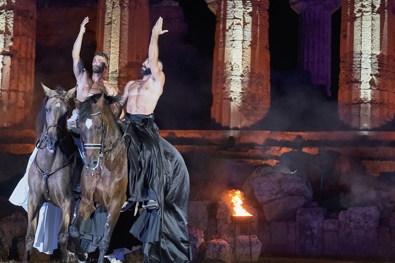 Lux, il nome dello spettacolo messo in scena il 31 agosto a Selinunte, è una produzione imponente che nasce dalla collaborazione tra Uaipre-Ancce Italia (Associazione Italiana Pura Raza Española), Coop Culture, e il Parco Archeologico di Selinunte. Grazie anche al supporto di Omar Selvi, questa creazione ha portato in vita un atto unico di 80 minuti, un’opera magistrale di teatro equestre, dove il teatro classico incontra la potenza della natura. Davanti alla maestosa peristasi destra dell'Heraion, sette cavalli imponenti hanno recitato insieme a 22 performer tra cavalieri, attori, cantanti, e musicisti, creando un’esperienza visiva e sonora senza eguali.