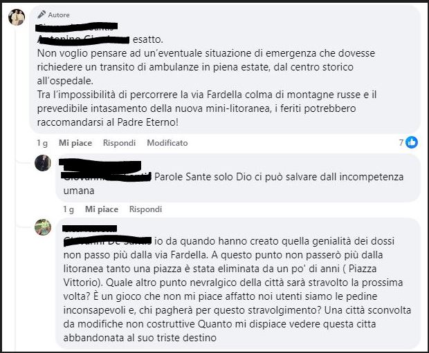 C’è poi il dilemma delle emergenze per le quali gli automobilisti devono accostare per far passare i veicoli a sirene spiegate, che siano ambulanze o Forze dell’Ordine. Ma lo spazio non sembrerebbe esserci. Così come mancherebbe anche quello per autobus, camion e tir, provenienti dall'Agroericino con i loro carichi di marmo. Infatti c’è chi si chiede: “Ma se due grossi camion dovessero giungere da sensi di marcia opposti, riuscirebbero a passare? Il restringimento è davvero notevole".