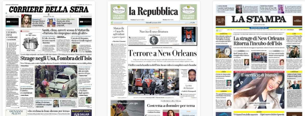 Un agente immobiliare di nome Shamsuddin Jabbar ha lanciato un pick-up contro la folla festante di New Orleans e poi ha aperto il fuoco con un fucile d’assalto. L’attentatore, trovato con una bandiera dell’Isis, ha causato 15 morti e oltre 30 feriti prima di essere ucciso dalla polizia.