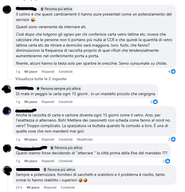 A questo si aggiungono le polemiche per il nuovo calendario della raccolta differenziata, che prevede il ritiro della carta ogni 15 giorni, una decisione che ha scatenato l'ira di molti cittadini, soprattutto dopo l'accumulo di scatoloni e carta da imballaggi durante le festività natalizie.