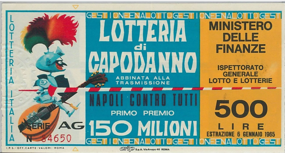 Ernesto Ruccione acquistò il biglietto vincente (serie BH, numero 32515) nella tabaccheria di Antonio D’Aguanno, situata in Piazza Matteotti a Marsala. Come riportano le cronache dell’epoca, il biglietto era stato acquistato circa dieci giorni prima della fortunata estrazione, assieme a un pacchetto di sigarette. Era stato lo stesso tabaccaio, vedendo che Ruccione non aveva intenzione di spendere quei soldi in più, a convincerlo a comprare il biglietto.