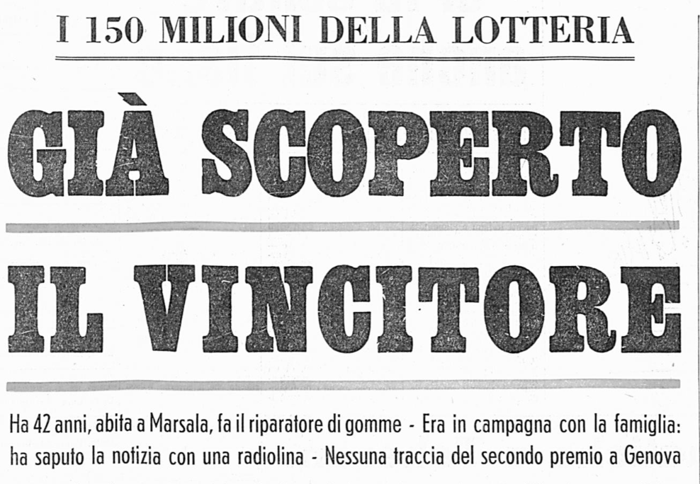 I giornali dell’epoca si soffermarono sui dettagli della vincita e sui curiosi retroscena. In un articolo si legge: “La casa del gommista, particolarmente nota nella cittadina, è stata presa d’assalto dagli immancabili curiosi, che cercheranno nella sua ricchezza la soluzione di qualche loro problema.”