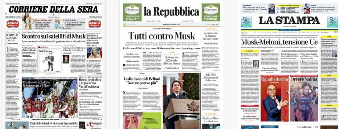 La Ue contro Musk. I leader europei Macron e Starmer accusano Elon Musk di diffondere «menzogne» e sostenere «una nuova internazionale reazionaria». Intanto, la procura di Roma acquisisce le chat tra Musk e Andrea Stroppa nell’inchiesta Sogei (con Musk formalmente estraneo).