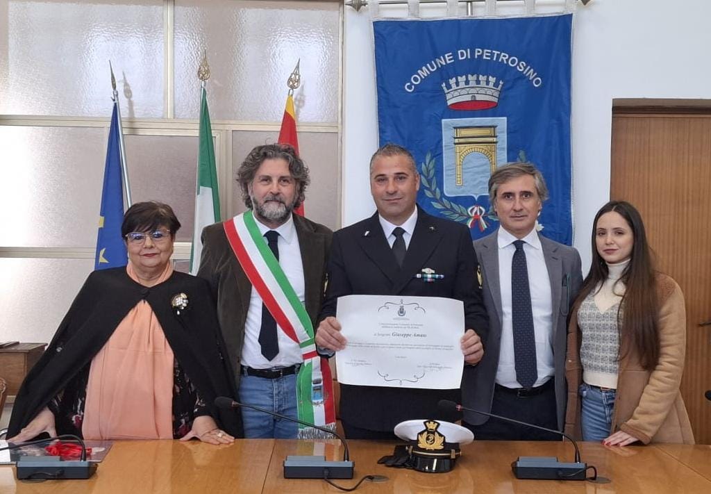 “In rappresentanza di tutta la cittadinanza di Petrosino, abbiamo voluto sottolineare l’esemplare coraggio che il nostro concittadino Giuseppe Amato ha dimostrato rischiando la vita nell’azione che ha portato al salvataggio di 120 persone migranti – ha dichiarato il Sindaco Anastasi – Quello di oggi, da parte della mia Amministrazione, è un gesto simbolico, ma molto concreto e significativo. L’azione che ha visto protagonista il Sergente Amato è uno straordinario esempio dell’impegno e del coraggio con cui la nostra Marina Militare svolge quotidianamente il proprio lavoro. Ma ancor di più, ci restituisce i valori di umanità e il rispetto della vita umana che caratterizzano gli uomini e le donne che in questi anni, nello svolgimento delle loro mansioni, hanno messo in salvo chi rischiava la vita in mare. Sono convinto – conclude il Sindaco – che questo gesto possa essere per la nostra comunità un seme per coltivare i valori dell’accoglienza e del rispetto della dignità e della vita umana. Grazie a nome di tutta la cittadinanza di Petrosino al Sergente Giuseppe Amato per non essersi tirato indietro in quella tragica giornata e per il servizio che quotidianamente svolge”.