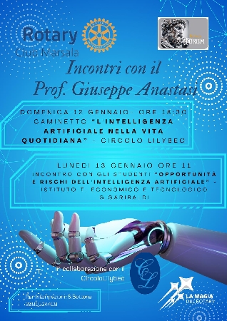 Il Rotary Club di Marsala, in collaborazione con il Circolo Lilybeo, organizza due incontri dedicati al tema dell’intelligenza artificiale (IA), un argomento di grande attualità e impatto nella vita quotidiana e nel futuro della società. Gli eventi, che vedranno come relatore il prof. Giuseppe Anastasi, già relatore del Festival Sicil.ai a Marsala, rappresentano un’occasione unica per approfondire opportunità e rischi legati all’IA.
