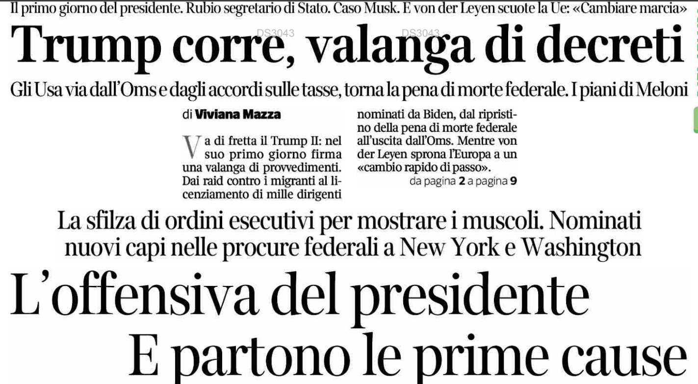 • Corriere della Sera: Trump corre, valanga di decreti