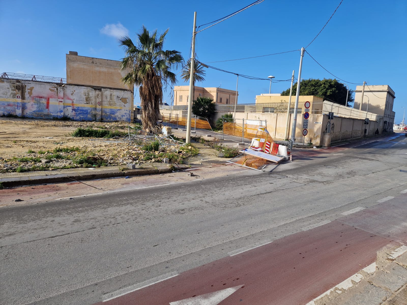Nel giro di dieci giorni, le transenne del cantiere del lungomare di Marsala nei pressi del porto - fermo da tempo - sono state travolte diverse volte, e questa mattina è accaduto di nuovo.