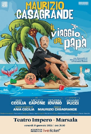 Un rapporto conflittuale tra padre e figlio, un naufragio su un’isola diversa da tutte le altre e persino un essere soprannaturale. Sono questi gli ingredienti della commedia “Il Viaggio del Papà” che andrà in scena venerdì 31 gennaio alle ore 21,30 nel teatro Impero all’interno della “XVII Rassegna Lo Stagnone scene di uno spettacolo”. Si tratta del terzo appuntamento della rassegna realizzata dalla Compagnia teatrale “Sipario” diretta da Vito Scarpitta.