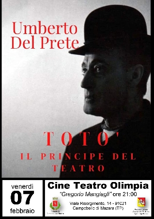 Lo spettacolo, che fa parte della rassegna “Il bello di Sicilia 2”, è un sunto delle migliori arti del principe della risata, con i più divertenti sketch teatrali, le canzoni e le poesie di Totò, leggendario attore partenopeo e comico, tra i più amati del teatro italiano. Da diversi anni, Umberto Del Prete interpreta la maschera di Totò, portando il suo spettacolo in tour in eventi artistici di richiamo nazionale e partecipando come ospite in numerose trasmissioni televisive, rendendo omaggio a un grande artista napoletano che, grazie alla sua nobiltà d’animo, ha donato sorrisi ad intere generazioni.
